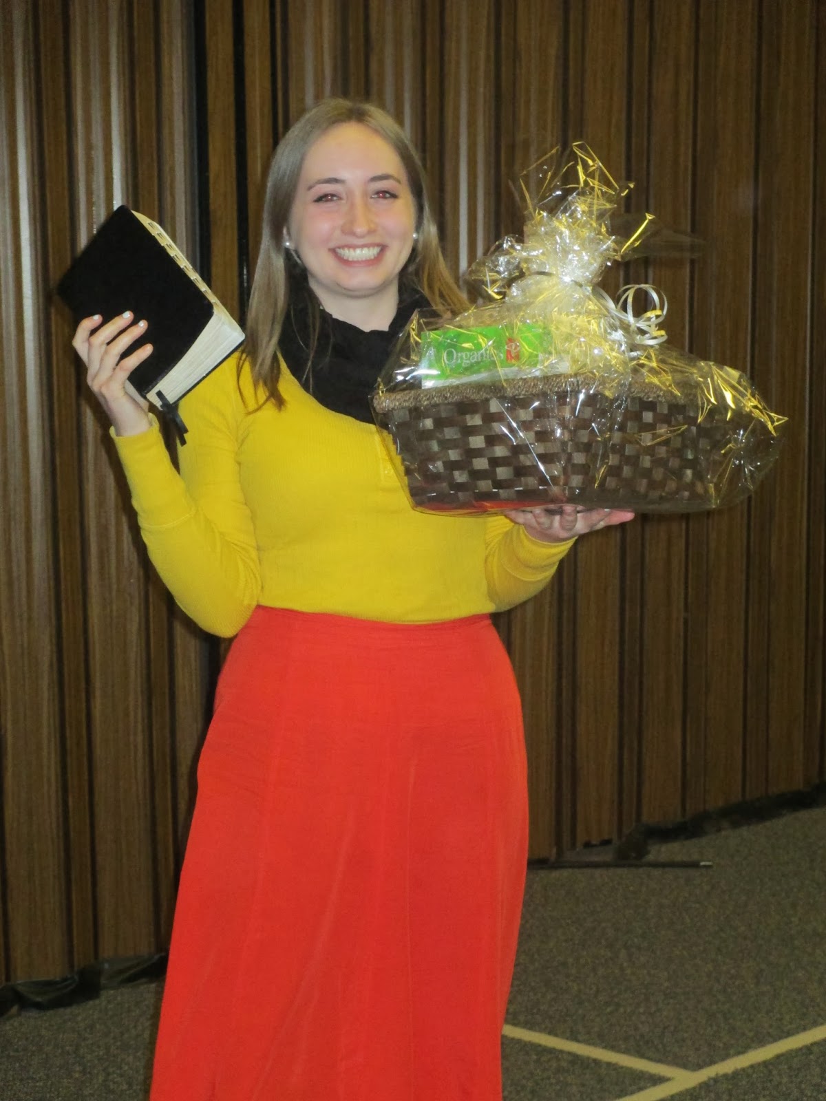 Thursday was the Sisters' conference call, and then we had service at the hospital. I brought my Classical Carols book and had a really good time. Then we went to visit a less-active, Amber, who we only recently discovered. She converted here about 7 years ago, but then she moved to Calgary, and she has apparently been living in Saint John for a year but hasn't come back to church. She's super nice and has a great testimony, just a lot of social concerns. She had a lot of hilarious stories about dating awkward recently returned RMs when she was a new convert and was still used to the non-LDS style of young adult interactions. Then we went to a lesson with Leslie, and her daughter Sam. We did a lot of establishing our purpose and trying to help them see the need for the gospel, but Sam has selective mutism and Leslie is also really quiet, so it kind of felt like we weren't getting through to them. Then at the end of the lesson, Leslie explained about the selective mutism and everything and assured us they were really interested, so that was a relief! After that, we went knocking for a bit and then had dinner before following up on some potentials and going to Old Testament Jeopardy at the church. Courtney, one of the ward missionaries who used to be 7th Day Adventist, got into an argument with Elder Davidsen about whether the Old Testament is relevant, so she planned an AWESOME activity to prove that it was. She invited a ton of 7th Day Adventists to the activity, and it was just really well done. We had several rounds, and I played in the first round and I won handily. We got a giant gift basket of various types of food, like unleavened bread, pomegranates, grapes, gummy whales, etc., all with a bible verse written on it.